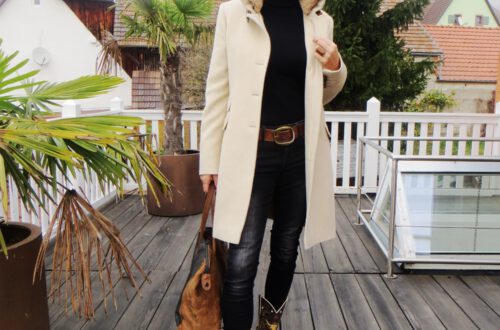 Ich habe viele Oversized Mäntel (die im Moment „in“ sind) anprobiert und ich fühle mich auch toll in ihnen, aber leider stehen sie mir nicht wirklich. Ich finde mir stehen taillierte Mäntel besser, in Oversized sehe ich mit meiner nicht ganz kleinen Oberweite und meiner breiten Hüfte immer aus wie „rund“. Von daher habe ich mich für die kurze Fell-Variante entschieden.